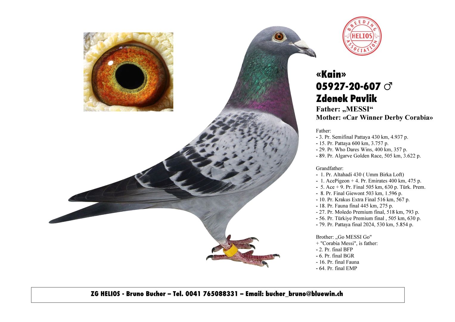 Mehrere Söhne und Töchter des Zdenek Pavlik Stammvogels “MESSI” züchten bei der ZG Helios, “Kain” ist aktuell international einer der erfolgreichsten Söhne des “Messi”, werfen Sie gern auch einen Blick auf den Sohn aus Schwester “Kain” in Käfig 7.